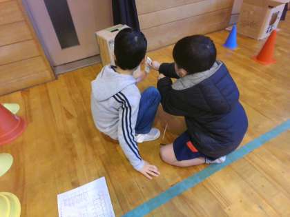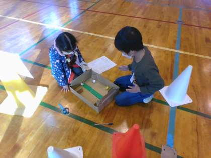 ボーリングや、まとあてなど、1年生を楽しませようと思ってつくった、様々なおもちゃで楽しんでもらいました。「はじめは、どきどきしていたけど、1年生がたくさん来てくれてうれしかったよ」「1年生は、ボーリングを2回で全部倒してしまってすごかったよ」「1年生も楽しそうでうれしかったけど、私たちもとても楽しかったよ」ととても満足した様子でした。