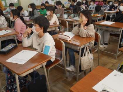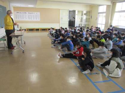 今日は蜷川の交通安全指導員さん2名をゲストティーチャーでお招きし、地域の安全を守るすてきを教えていただきました。雨の日も風の日も雪の日もわたしたちの登下校を見守ってくださる指導員さんから、お仕事の内容や気を付けることを聞きました。「どんな気持ちで毎日立ってくださっているのですか」という質問に対して、「子どもたちからパワーをもらっている、生きがいなのです」とお話され、子どもたちはたくさんの人に見守られているおかげで安全に過ごせていることに気付くことができました。