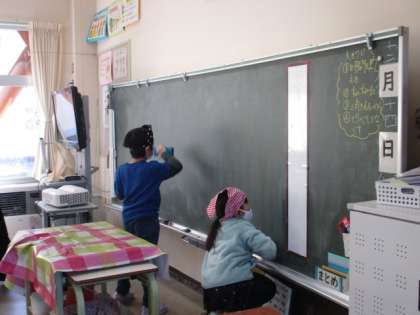 今日の清掃中の様子です。給食を食べ終わった後、外へ遊びに行く子供が多い中、清掃の時間が始まる前から教室の黒板を丁寧に消したり、ほうきやぞうきんで教室の床をきれいにしたりしている姿がとても素敵でした。「自分から」「進んで」取り組める子供たちに成長を感じました。