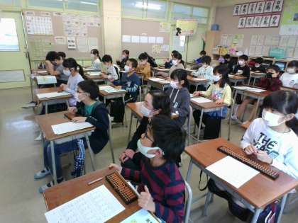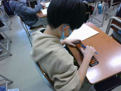 そろばんを弾く姿も、様になってきました。「こんなに便利なものが、昔からあったなんてすごいね」「5玉を入れたり、ひいたりするのが、頭を使っておもしろい」というような声が聞かれました。