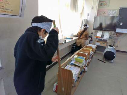 大そうじをしたクラスでは、棚の後ろや黒板の裏まで、子供たちが念入りにそうじをしました。終わった後の教室は、ピッカピカでした。気持ちよく、明日の終業式を迎えられそうです。