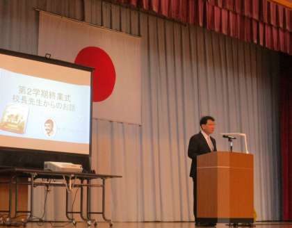 2学期の終業式では、校長先生から、アーノルド・ノーベル作「クリスマスイブ」の物語を聞きました。子供たちは、物語にじっくりと耳を傾け、登場人物の心温まる友情に心を動かしていました。校長先生は、この物語の登場人物のように、友達を大切にするとともに、人にやさしく、自分に厳しくすることをお話しされました。来年、子供たちみんなですばらしい年をつくっていきたいと思います。