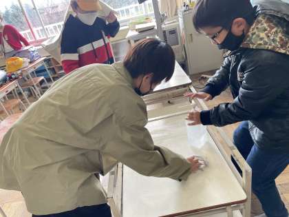 掃除をすみずみまで行い、最後は綺麗な教室で2学期を終えました。楽しい年越しをお迎えください。「よいお年を!」