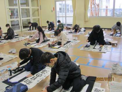 今日の2時間目に書初をしました。書初に対する子どもたちの真剣な姿を見て、新年からがんばりたいという気持ちがひしひしと伝わってきました。