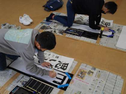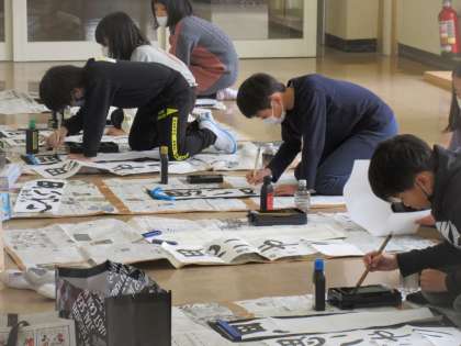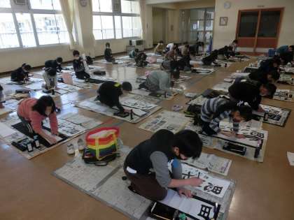今年の書初大会の課題は「思いやり」でした。始業式、校長先生のお話にあった「言霊」について思い出しながら、子供たちは一字一字丁寧に書いていました。年始めに心を落ち着かせて書いた「思いやり」を胸に、この一年を過ごしていってくれることと思います。
