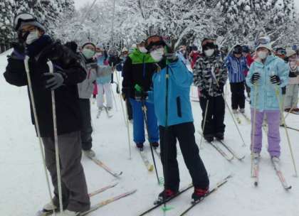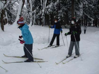 最初はクロスカントリースキーを行いました。初めての感覚にドキドキしながらも、楽しんでいました。