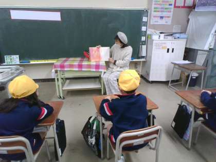 今日は、今年度最後の読み聞かせがありました。雪にちなんで、「雪女」の話を読んでいただき、子供たちはお話に聞き入っていました。