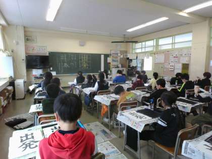 3学期最初の毛筆は「出発」です。今の子供たちにぴったりの言葉です。