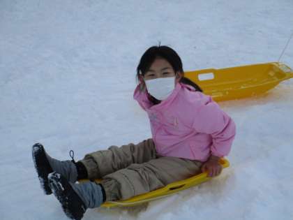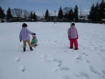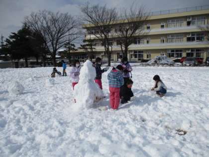 そりをしたり、雪だるまをつくったりしました。そりは、スキー山の頂上から勢いよく滑り、曲がったり転がったりしながら思い切り楽しんでいました。