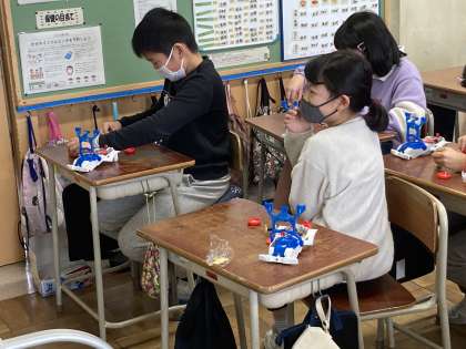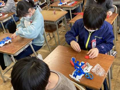理科で電磁石を使った学習を行っています。