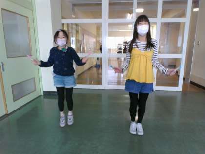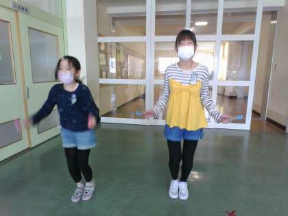 みんなで縄とびを練習しています。がんばっていろいろなわざにチャレンジしていました。これからもがんばって練習を続けてください!!