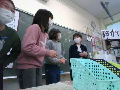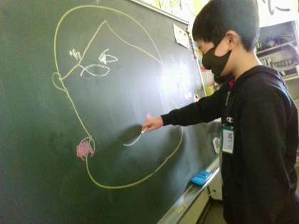 怖い話の紹介や福笑いをしました。照明を暗くして怖い雰囲気をつくったのでドキドキしました。他にも作文ゲームや絵しりとりでコロナ禍でも楽しめる「密にならない遊び」で、みんなを笑わせてくれて、笑いの渦が巻き起こっていました。