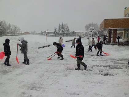 今週はたくさんの雪が降りました。正面玄関前では、朝から除雪作業を行う6年生の子供たち。少しでも学校のためになることがあれば…と、率先して体を動かしました。卒業までにできることをどんどん取り組んでいきたいと思います。