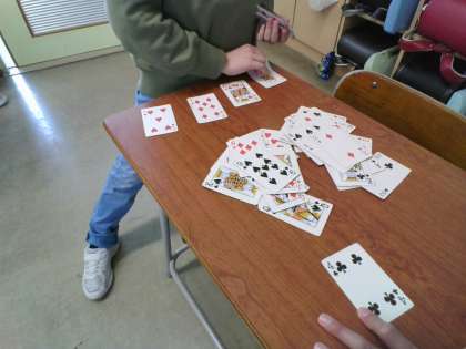 今、学校でトランプが流行っています。今はスピードをしています。どっちが勝つかな?