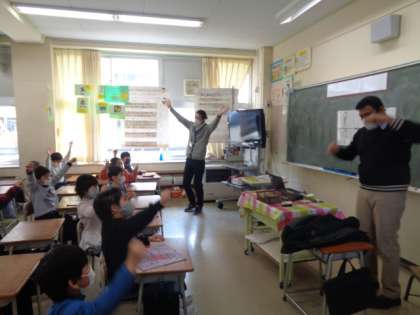 3年生になったら始まる「外国語」の授業を体験しました。最初は、難しいと思って緊張していた子供たちですがゲームを通して英語にふれていきました。最後には、英語で「Iam happy!」と言えるようになっていました。「とっても楽しかった」と外国語の授業に満足していました。3年生になって学ぶのが楽しみです。