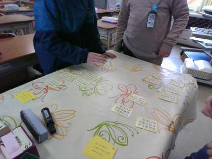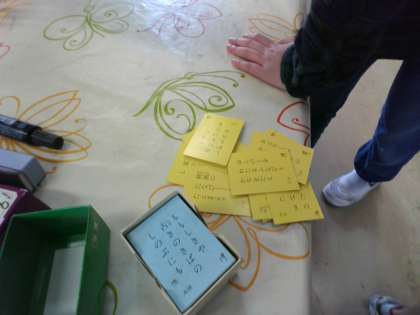 学活の時間に百人一首をやってから、白銀タイムに百人一首をしている人が多くなりました。自分たちで読み合ったり、取り合ったりして楽しんでいます(^o^)