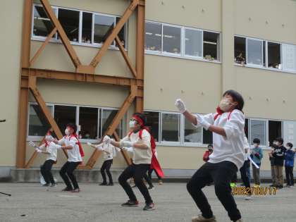 代表の子どもたちを中心に練習を繰り返し、今日の本番を迎えました。いろんな思いを動きやかけ声、手拍子に乗せて届けました。