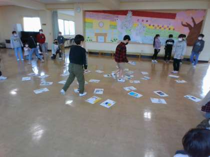 子供たちは友達の絵札は見ていたものの、読み札とセットで知るのは今日が初めてなので、「どんなかるたかな」「いっぱい取るぞ」と大張り切りでした。
