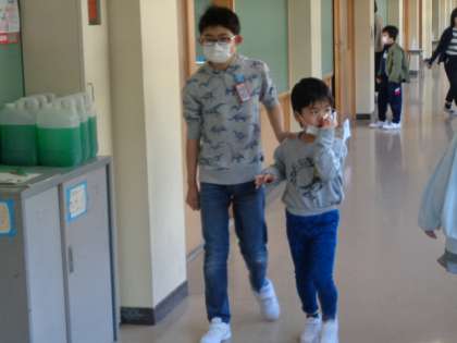 今日から、1年生の学校生活が始まりました。早速、朝の準備のお手伝いに行って、困っていることがないか気にする優しいお兄さんお姉さんの姿がありました。腰を落として目線を同じにして話をする姿や、手を肩に添えて誘導する姿を見て、心が温まりました。
