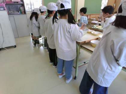 給食当番の仕事、配膳の待ち方など、子供たちは少しドキドキしながら準備をしていました。給食は「おいしい」と笑顔いっぱいで食べる子が多かったです。明日の給食もお楽しみに。