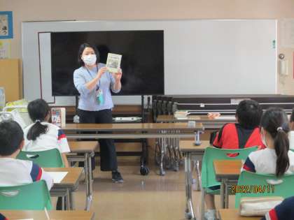 図書館司書の先生から、図書室利用のオリエンテーションがありました。5年生は、本を有効に使った調べ学習の仕方を教えていただきました。また、5年生におすすめの本も紹介していただき、「おもしろそう、読んでみたいな」と意欲を高めていました。これから様々な本に親しんでいってほしいです。