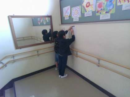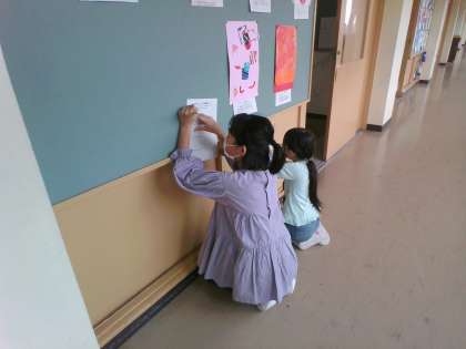図工の学習で、友だちの作品のよいところをたくさん見付けました。色の使い方やもようの形、切り方等、表現の仕方の工夫をこれから生かしていってほしいと思います。