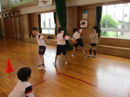 体育では、5月の運動会に向けてリレー練習を行っています。初めてバトンを持ってリレーを行うということで、バトンの受け渡しを練習したあと、実際にチームごとに走ってみました。「全力で走れた!」「ピンチの時もあったけど、仲間の応援のおかげでがんばれた」「もっと練習して、バトンを上手に渡せるようになるぞ」と、意気込んでいました。