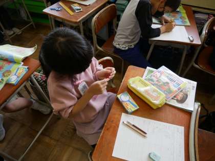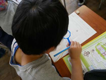 理科では様々な種の観察を行いました。種によって大きさや色、形が違うことに気付き、種が大きければ、花も大きいのかなと、疑問に思ったことをワークシートに書いていました。