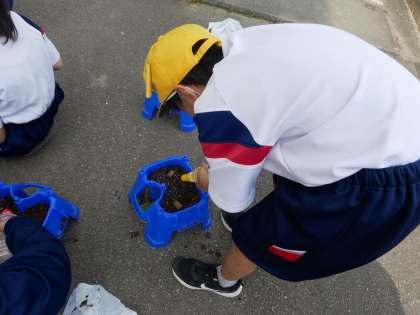 ホウセンカの種を植えました。子供たちはこの日を楽しみにしており、嬉しそうに種を植えていました。これから大切に育てていきます。