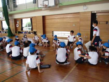 今年の運動会の6年生団体競技は、リレーです。子供達はこれまでに、たくさんバトン渡しの練習を行ってきました。今日は団で集まって、走順を決めました。各団で協力し合い、みんなで作戦を練る姿を見て、チームワークの高まりを感じました。