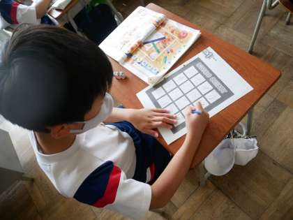 新しい単元の勉強に入りました。ALTの先生の発音に続いて発音したり、数字ビンゴをしたりして、楽しみながら1〜20までの数字の言い方に慣れ親しみました。