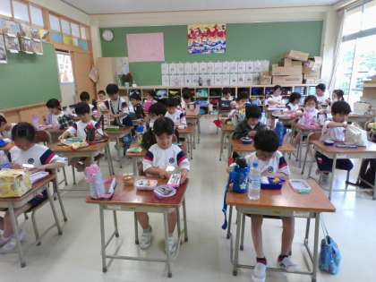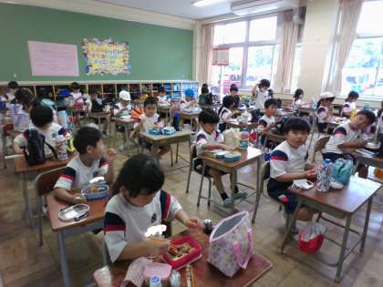 教室に戻って、おいしくお弁当をいただきました。