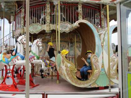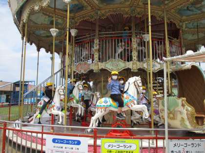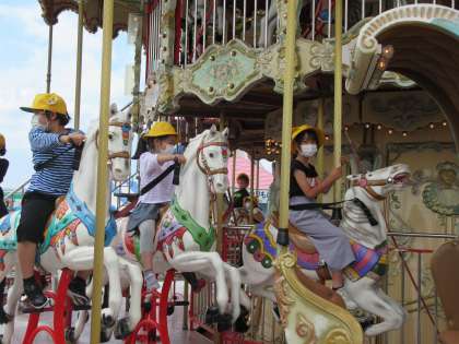 メリーゴーランドの様子です。馬にや馬車に乗ると、まるでお姫様や王子様になった気分になりました。