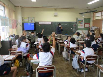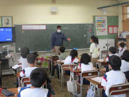 外国語活動では、ALTと数の言い方の学習をしました。子供たちは、3年生から始まった外国語活動が大好きで、楽しみながら英語に親しんでいました。