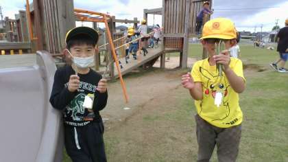 広場では、鬼ごっこやこおり鬼をして、体をいっぱい使って遊びました。