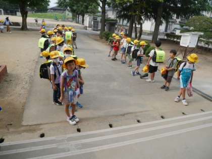 朝の登校後、玄関前で1年生が1列に並んで待っていました。前の日に、玄関の前でたくさんの人が押し寄せて危ないこと、1列に待っていてほしいことを話したら、すぐに実践していました。整然と並んで待つ姿は1年生とは思えません。素直に受け入れ行動に移せるすてきな1年生です。