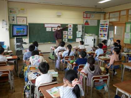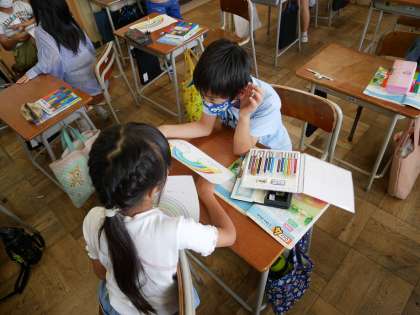 新しい単元に入りました。色の表現の仕方について学び、自分が好きな色の虹をかきました。何色を選んだのか友達に英語で伝え合うなどして、色の表現の仕方に慣れ親しみました。