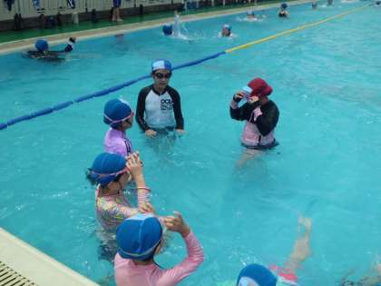今年度のプール開きが行われ、4年生は23日にプール学習をしました。泳力ごとに分かれ、目的意識をもって学習に取り組んでいました。