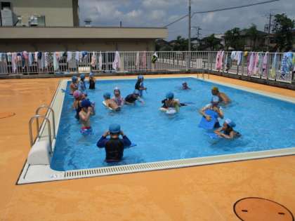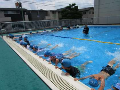 先週と今週の2回、水泳の講師をお招きして水泳学習を行いました。楽しく学習を進めていただいたおかげで、子供たちは明るい表情で学習していました。天気にも恵まれ、気持ちよくプールに入ることができました。