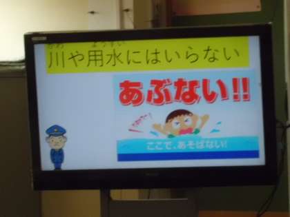 夏休みの過ごし方について五十嵐生徒指導主事の話を聞きました。安全な生活のために夏休みに気を付けることを『車火水マン』の合い言葉で確認しました。