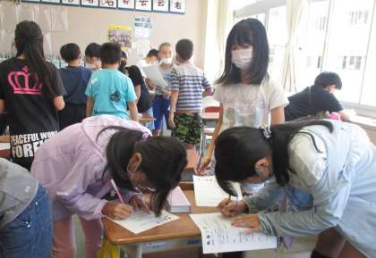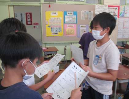 始業式の後に、夏休みビンゴをし、休みをどのように過ごしたかを友達同士で楽しそうに聞き合っていました。久しぶりに友達に会えて嬉しそうな子供たちでした。