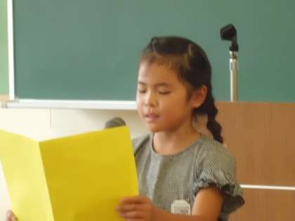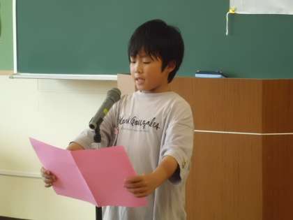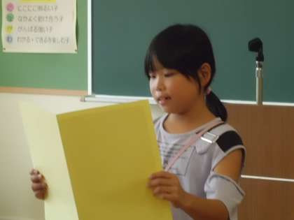 2学期の意気込みを発表した子供たちは、「自主学習を工夫して考える力を付けたい」「分かることを増やしたい」「自分で学習の仕方を選んだり、友達と教え合ったりして楽しく学習する」など、1学期の手応えを基にやる気を高めていました。