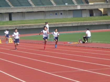 大きな競技場での記録会で緊張するかな・・・と心配していましたが、競い合うことや自分の記録を更新するために全力で挑戦することを楽しんでいるようでした。お弁当や朝の送り出しなど、ご協力ありがとうございました。