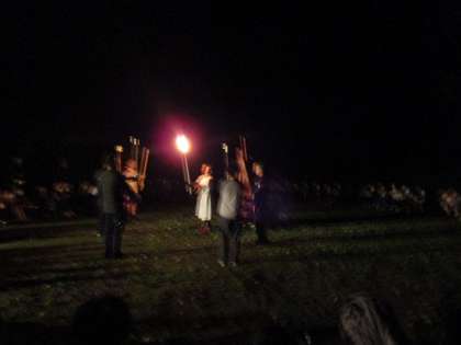 火の神から火の粉たちが決意の火をもらい、点火しました。おごそかな静かな雰囲気です。