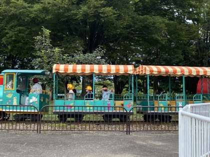 子供列車は、チリンチリンと音を鳴らして、ゆったり園内を走りました。