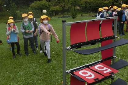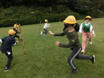 午前は野外活動として、フライングゴルフ・ストラックアウト・バンブーチャレンジをしました。その時の様子です。