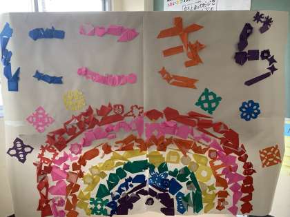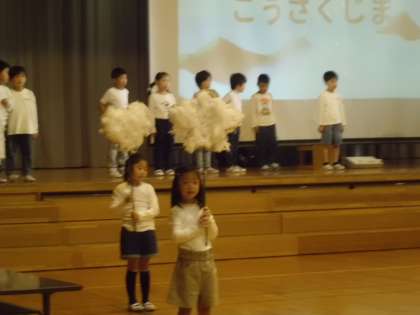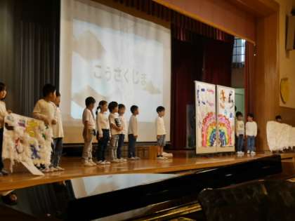 こうさく島では、それぞれの島の看板、雲、おりがみアート「にこきら」に分かれて制作をし、作品をお披露目しました。また、緊張しながらも、一人一人が自分の台詞をはっきりと言うことができました。