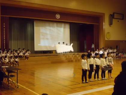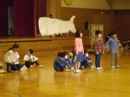 これまで、たくさん練習してきた劇チーム、ことばあそびチーム。本番に強いのか、いつも以上に上手に演技をしていました。今日、残念ながらお休みの友達もいましたが、フォローしあいながら最後まで演じきりました。子供たちに大きな拍手をありがとうございました。