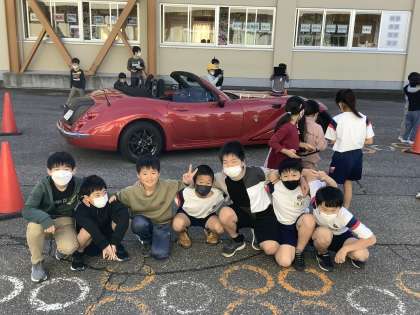 「ヒミコ」という名前の自動車が蜷川小学校にやってきました。