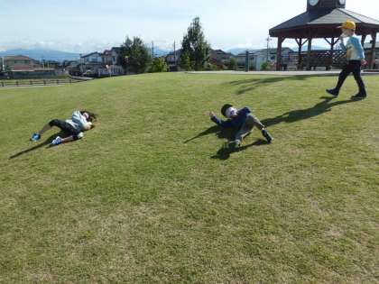 草の上を転がったり、ブランコをしたりしていました。